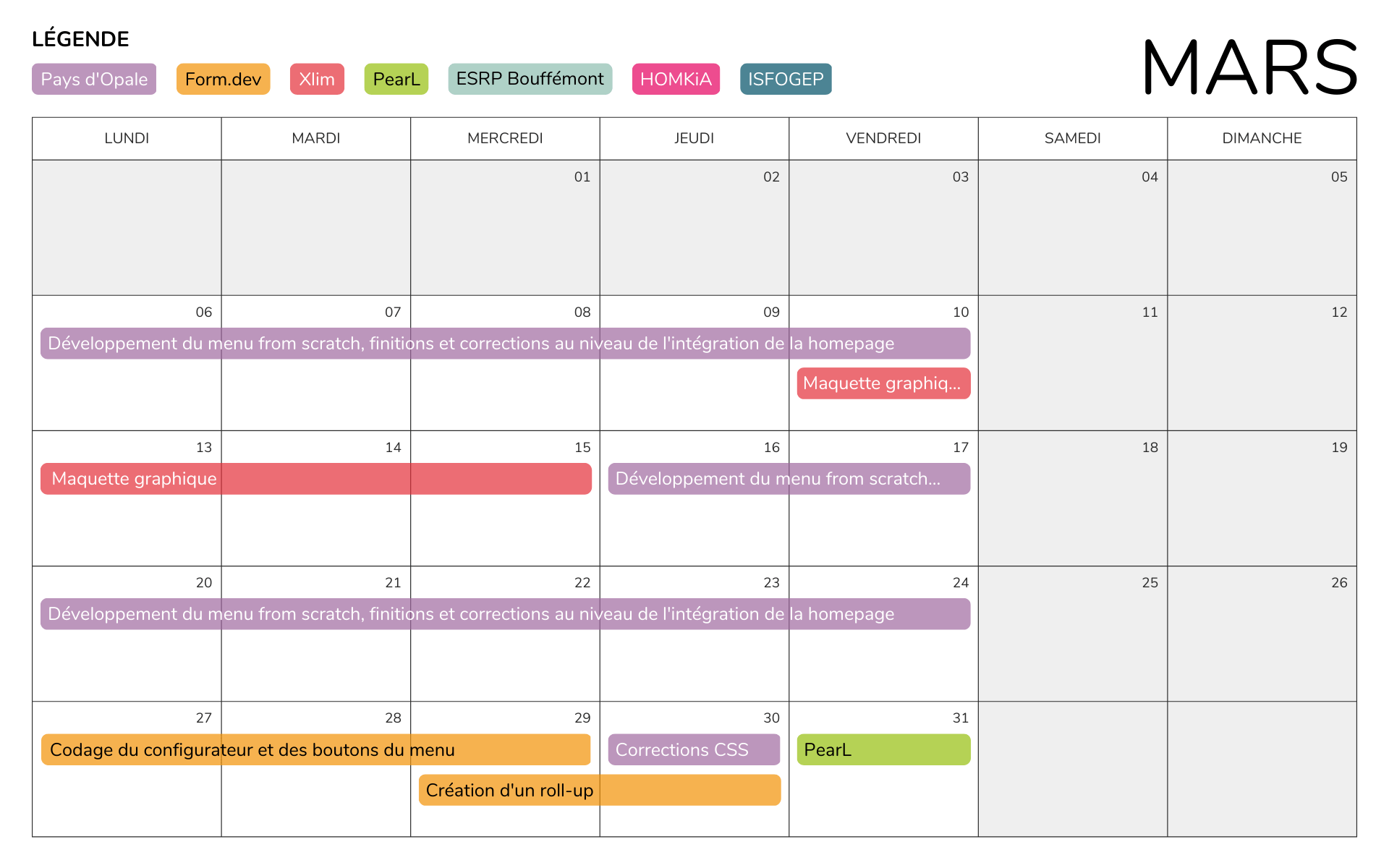 J'ai aussi pu réaliser toutes sortes de tâches nécessitant certaines connaissances dans le domaine du développement web que Crimson Factory ne possédait pas. Je les ai ainsi dépannés sur des problèmes mineurs comme la fonctionnalité du site PearL, mais aussi sur des projets plus importants comme Form.dev (configurateur de formules) et Pays d'Opale (menu multilingue et redirection d'URL). J'ai pu produire des codes fonctionnels dans des délais relativement courts, ce qui nous a permis d'obtenir des retours clients le plus rapidement possible afin de passer directement à la suite du projet. Le configurateur de Form.dev ne sera sans doute pas amené à être modifié par mon maître de stage ou son associé dans un futur proche, mais en ce qui concerne le menu multilingue du Pays d'Opale, j'ai fait en sorte que ce dernier soit facilement modifiable (dans le cas d'un rajout potentiel de pages sur le site par exemple) même pour quelqu'un ne maîtrisant que peu voire pas PHP.